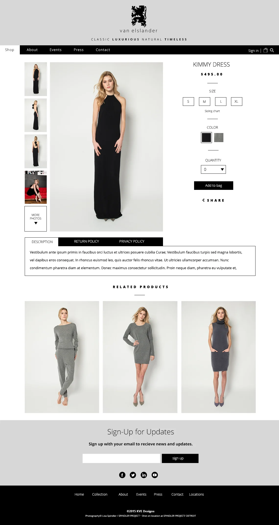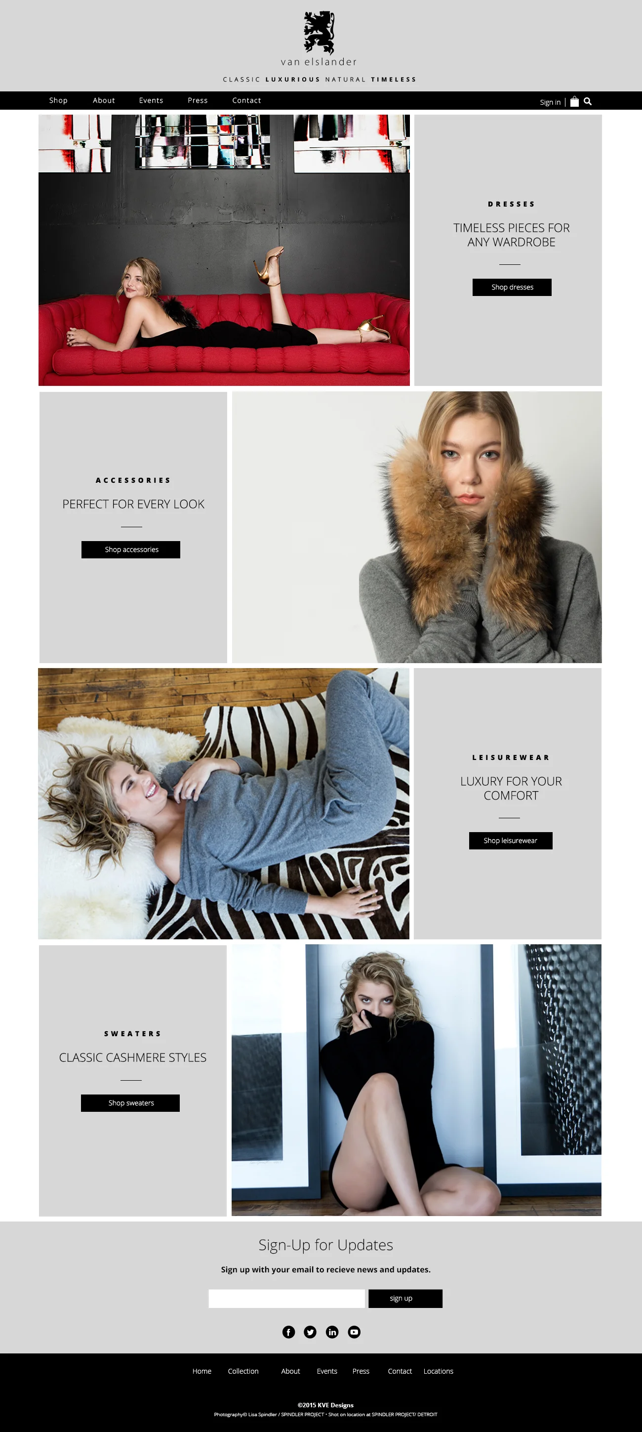 Van Elslander is a high end clothing company. I designed their ecommerce website, as well as, helped to develop their brand.